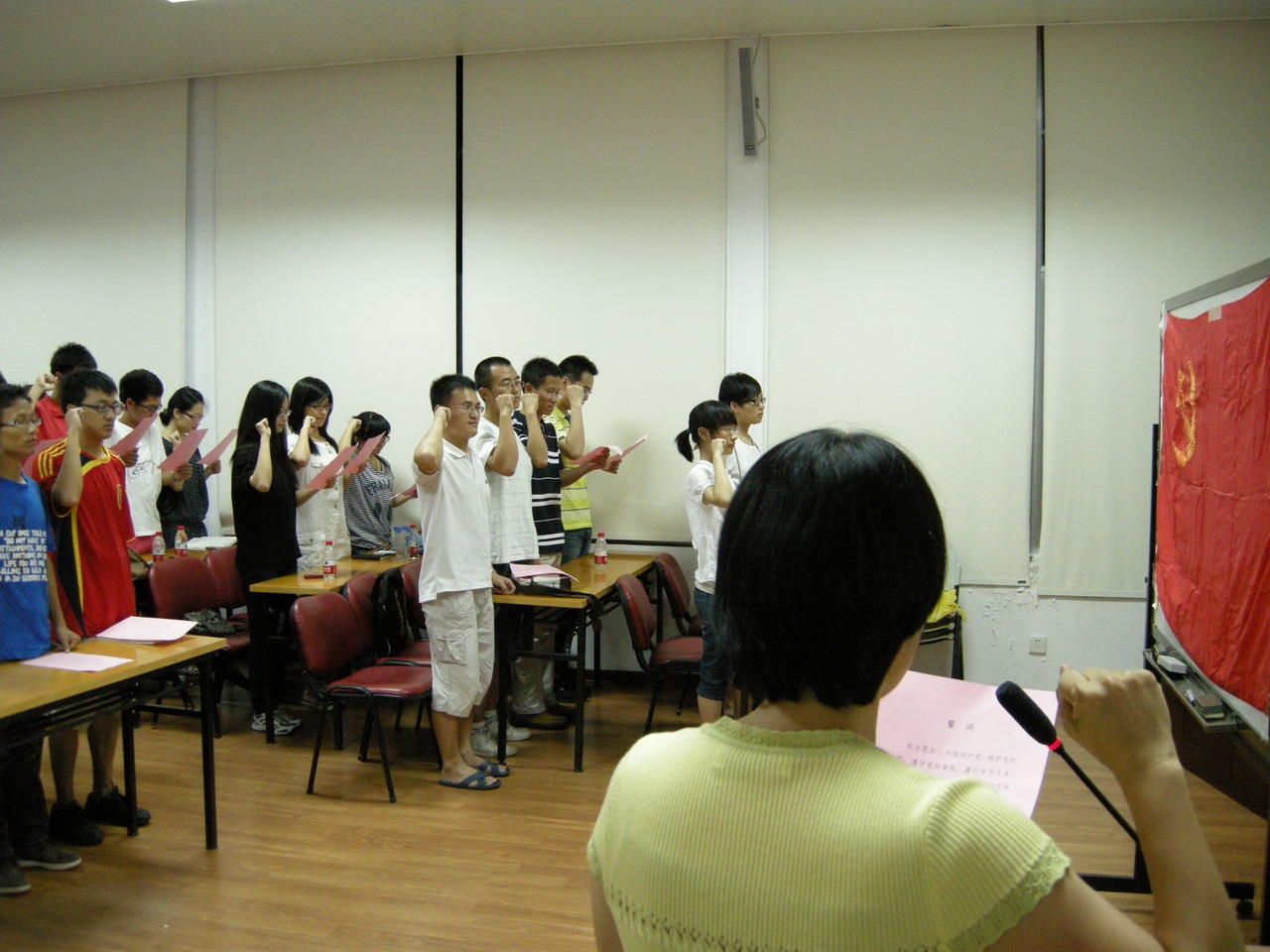 王艺宏副书记带领新党员宣誓。“我志愿加入中国共产党,拥护党的纲领,遵守党的章程……随时准备为党和人民牺牲一切,永不叛党!”庄严的誓词凝聚着新党员同志们对党和党的事业的一片赤诚,洋溢着新党员同志们实现夙愿的喜悦和豪迈向前的激情,更表达出他们创先争优、永葆先进、描绘现代化建设崭新蓝图的决心!