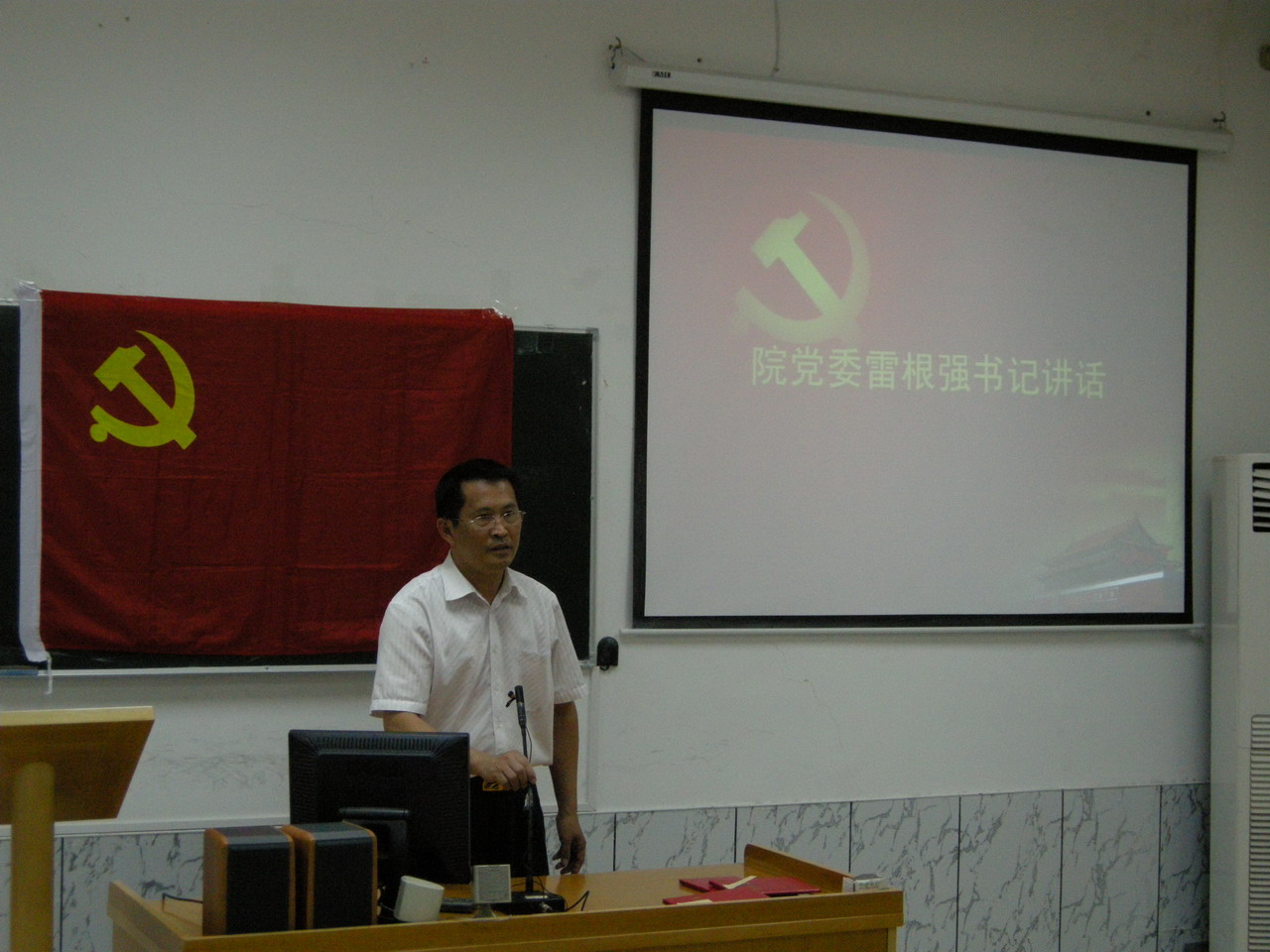 为迎接中国共产党成立90周年,经济学院党委于6月29日晚召开2011年度七一表彰大会暨新党员宣誓仪式,学院党委委员、全体受表彰师生党员以及新党员出席了大会。会议由经济学院党委副书记孙梓光主持。
