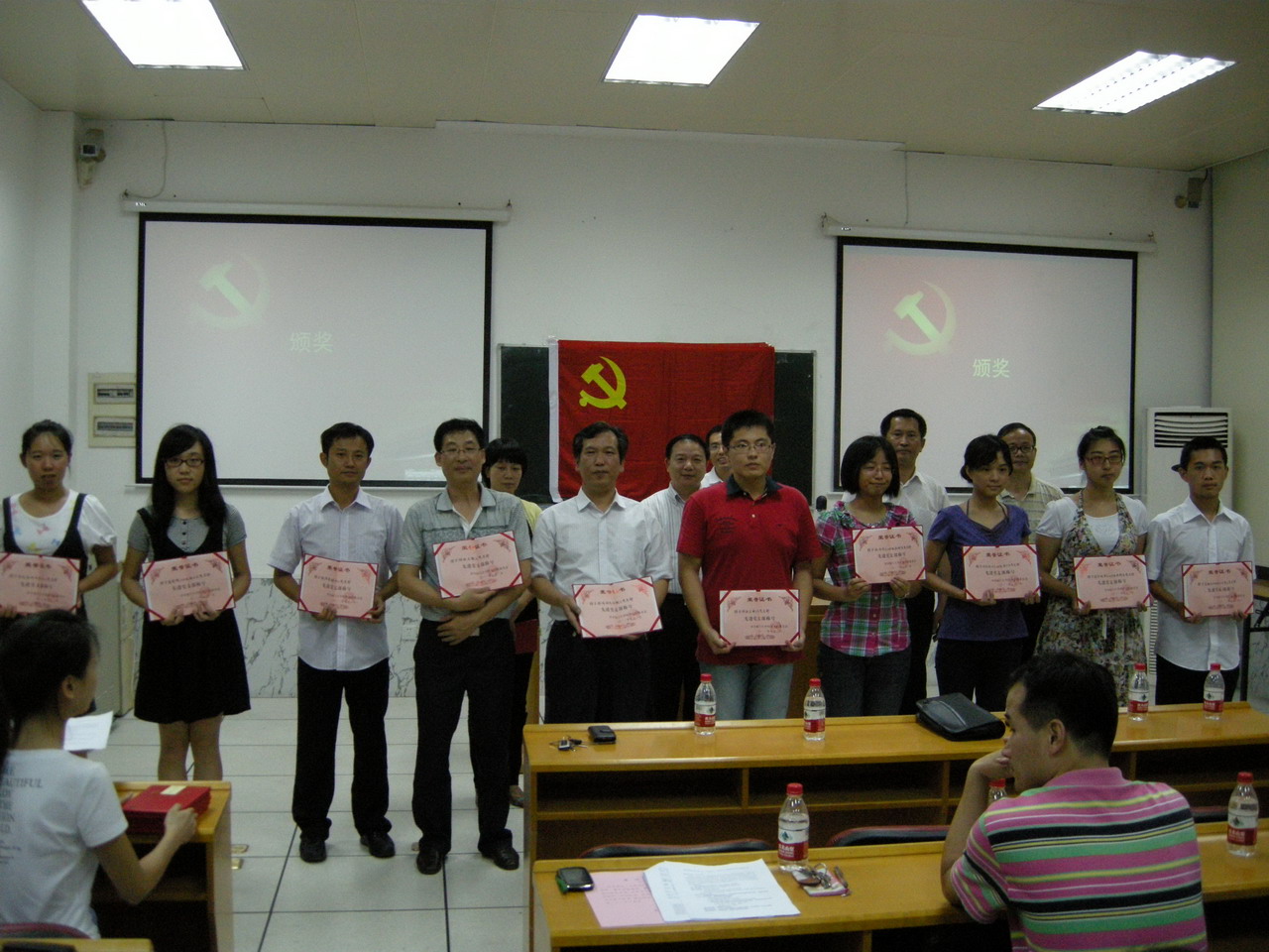 会议在庄严的国歌声中拉开序幕。经济学院党委副书记王艺宏宣读表彰决定,授予任力等“优秀党员”称号,授予金融系2010级硕士生第二党支部等“先进党支部”称号,授予胡璐等“优秀党支部书记”称号,授予袁愉年等“优秀思政工作者”称号。会议推选优秀教工党员、经济学系副教授任力,优秀学生党支部书记、金融系2010级硕士生第二党支部书记徐涛等作代表发言。发言中无不感慨中国共产党成立90年来,带领全国各族人民在新民主主义革命、社会主义革命以及社会主义现代化建设中取得的丰硕成果,并结合自身工作、科研、学习实际,探讨如何更好地发挥党员的先锋模范作用和党支部的战斗堡垒作用,用不懈努力和出色成绩庆祝党的生日,共同描绘美好明天。与会全体党员按捺不住激动的心情,一次又一次地报以热烈的掌声。院党委委员、离退休老支部书记们共同为获奖者颁发荣誉证书并合影留念。