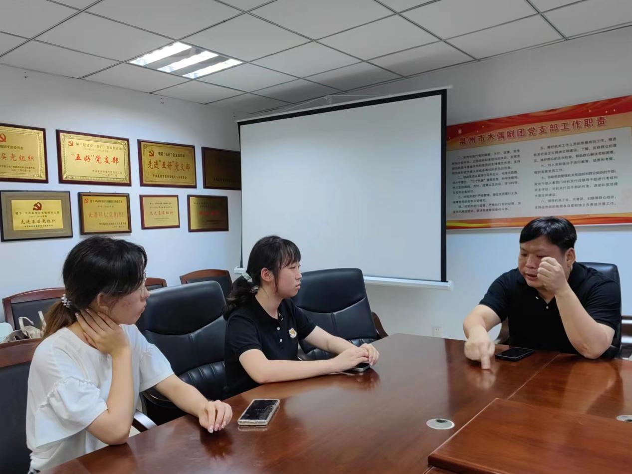 本次调研活动到此已经告一段落。在访谈中,实践队员们了解到泉州木偶具体的发展历程。在交流了解中,也意识到文化创新发展要依据其不同特色开发,戏曲表演仍需将关注点集中在放在演出方面,但也需要周边产品作为辅助。在表演类方面,应深耕表演技艺与文化内涵,同时注重融合发展,与时俱进。
