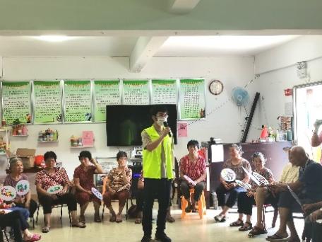 实践队队员在采访了负责人之后,便参与到了幸福院的志愿活动中。幸福院开设了教老人绘画的课程,用水彩在扇子上画出几束花。在绘画过程中,志愿者纷纷协助老人进行绘画,挑选颜色,提出建议。队员们还与老人一同参与套圈小游戏,帮忙记录,及时补货。最后,实践队队员们还志愿为老人们进行文艺表演,诗词朗诵和红歌演唱都赢得了老人们的热烈掌声。在场的老人们兴致都很高昂,坐成一圈与我们齐声合唱《我的祖国》,响亮的歌声回荡在幸福院中。实践队队员与老人们热情交流,打成一片,收到了老人们的一致赞扬。