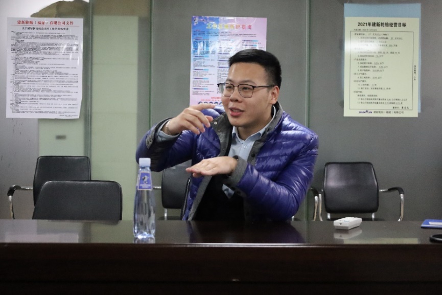 1月15日下午,实践队在指导老师倪骁然带领下走访了建新轮胎(福建)有限公司、福建英汉凯丰纺织染整有限公司、福建科宏生物工程股份有限公司3家民营企业。队员们以工厂参观、座谈采访等形式,实地了解企业在疫情影响下的高质量发展转型情况。