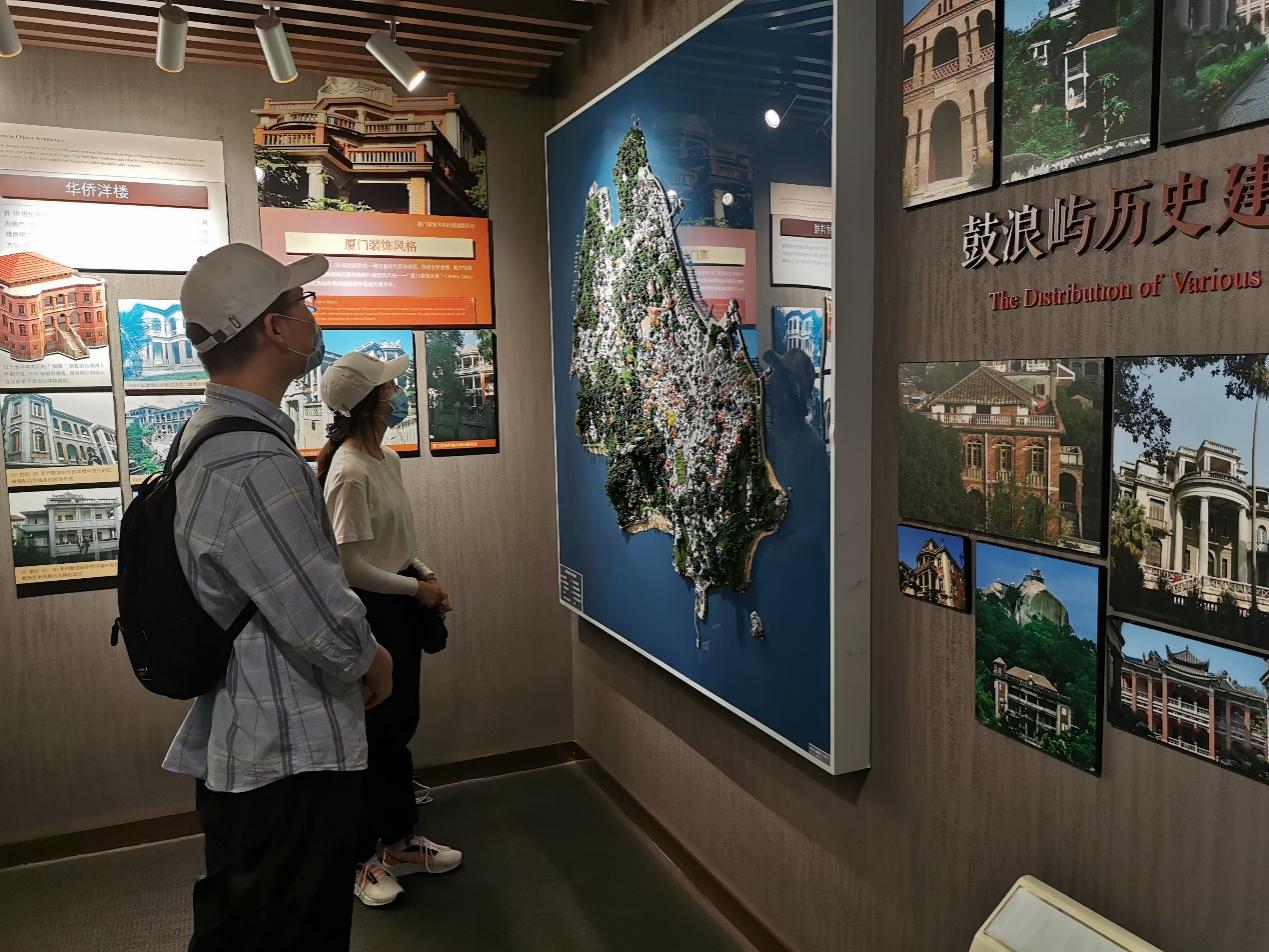 透过展馆里一张张具有时代沿革背景的照片,一段段描述了那个时代的风云激荡的文字,一个又一个具有特殊意义的实物展品,实践队员们了解到鼓浪屿曾经因1902年中国政府被迫同日、美、德等9国签定的《厦门鼓浪屿公共租界章程》而沦为公共租界,在鸦片战争爆发后100多年以来,英、美、德、日、西班牙、荷兰、奥地利、挪威、瑞典、菲律宾等国都曾在岛上设立领事馆,创办教堂、学校、医院、洋行。在这期间,西方文化和中方文化的碰撞融合,在建筑风格上出现了殖民地外廊式建筑风格与闽南传统建筑相结合的新式建筑。与此同时,鼓浪屿也在美术、教育、医疗等方面取得巨大成就,出现了林文庆、周淑安、林巧稚等名人。
