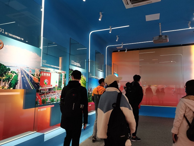 实践队首先前往厦门经济特区纪念馆参观,透过一张张风云激荡的历史照片,实践队重温厦门从经济落后的边防滨海小城到中国首批经济特区的蜕变。在几乎是“白手起家”的开创阶段,厦门市民不畏艰辛克万难,在思想解放,基础设施建设,人才引进培养等多个方面实现突破。1984年,在邓小平同志“把经济特区办得更快些更好些”的鼓舞下,厦门经济特区建设步入发展阶段,经过7年全方位的快步迈进,到1991年,厦门初步形成以工业为主、工贸结合,各业综合发展的外向型经济特区,进而步入增创新优势阶段,调整优化经济结构,稳步推进各项改革。今天的厦门正处于新跨越阶段,怀着海峡西岸经济区建设与促进祖国统一大业等目标,向前迈进。实践队成员们通过照片与实物重温厦门发展历程的同时,也感受其中蕴含的改革开放史与社会主义发展史。厦门在新的历史条件下,在中国共产党的领导下,攻坚克难,团结奉献,开拓创新,这正是“四史”精神的生动体现。