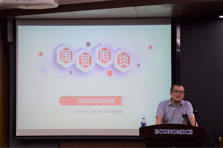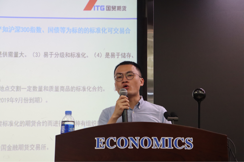 随后,国贸期货有限公司研究院分析师叶海文学长向我们介绍了期货的概念、期货交易制度及特点以及期货投资的有关信息,既解答了同学们的疑惑,又丰富了同学们的知识 。