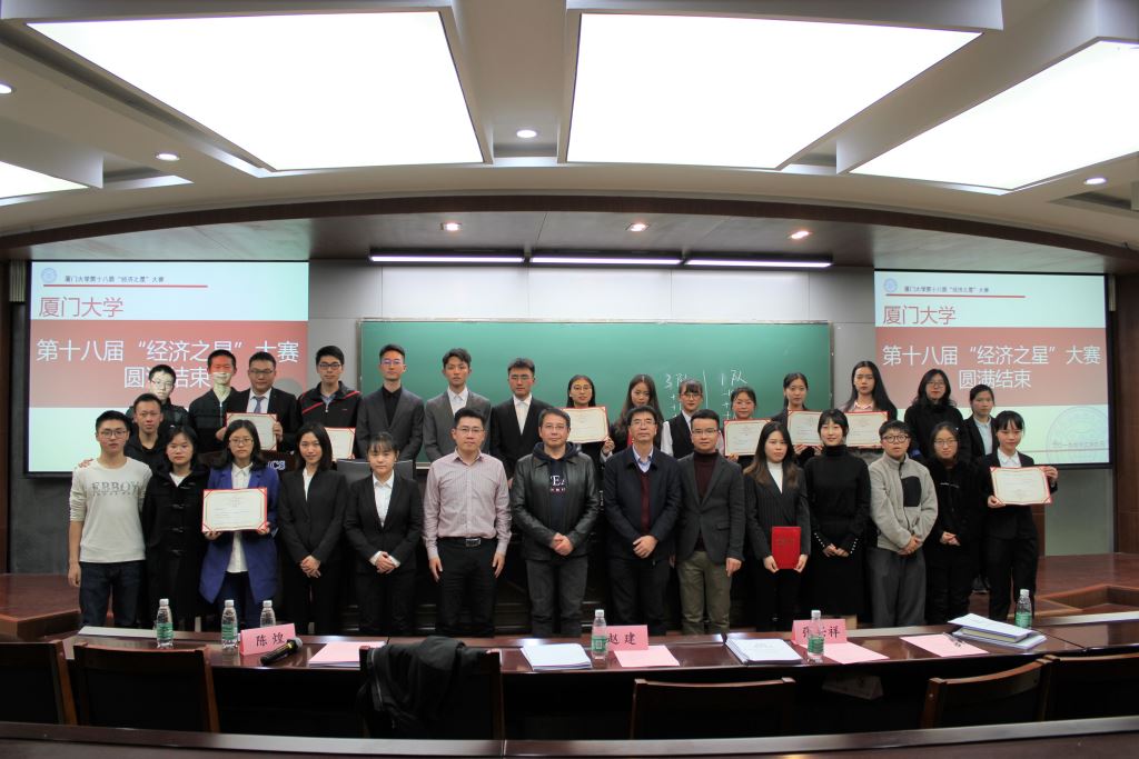 12月4日晚,“国际银行杯”厦门大学第十八届“经济之星”大赛决赛在经济学院N302顺利举行。经济学院经济学系副主任赵建、经济学系教工党支部书记张兴祥、经济学系助理教授陈煌老师应邀担任大赛决赛评委。
