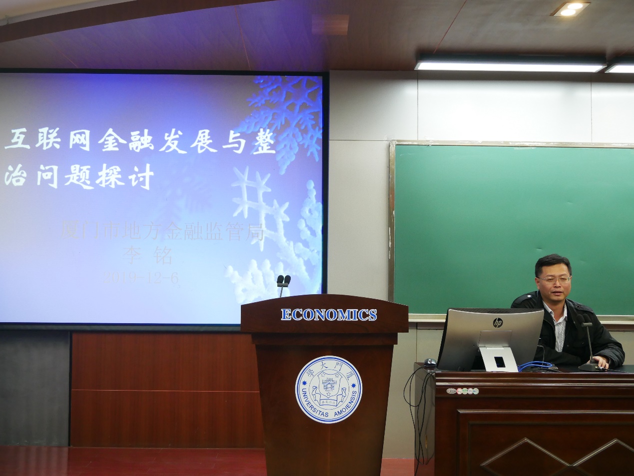 厦门市地方金融监督管理局金融协调处处长李铭带来主题为“互联网金融发展与整治问题探讨”的讲座。李铭处长通过讲述互联网金融风险的特征及分类等内容,让大家了解到非法集资的特点及危害,懂得如何提高防范意识和识别能力,从而自觉远离和抵制非法集资。