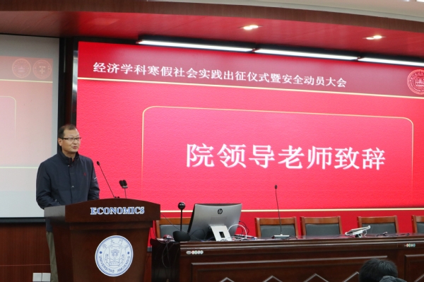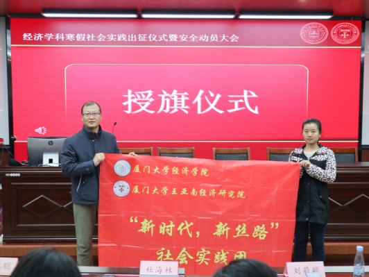 为充分调动同学们参与社会实践的积极性,营造积极向上的氛围,2021年厦门大学经济学科寒假社会实践出征仪式暨安全动员大会,于12月18日中午在经济楼N302圆满举行。经济学院党委副书记杜海林老师、团委书记刘莉颖老师、团委副书记王华老师、辅导员徐惠聪老师、研究生会主席肖天豪、研究生团总支副书记杜思雨以及实践队代表出席了本次活动。
