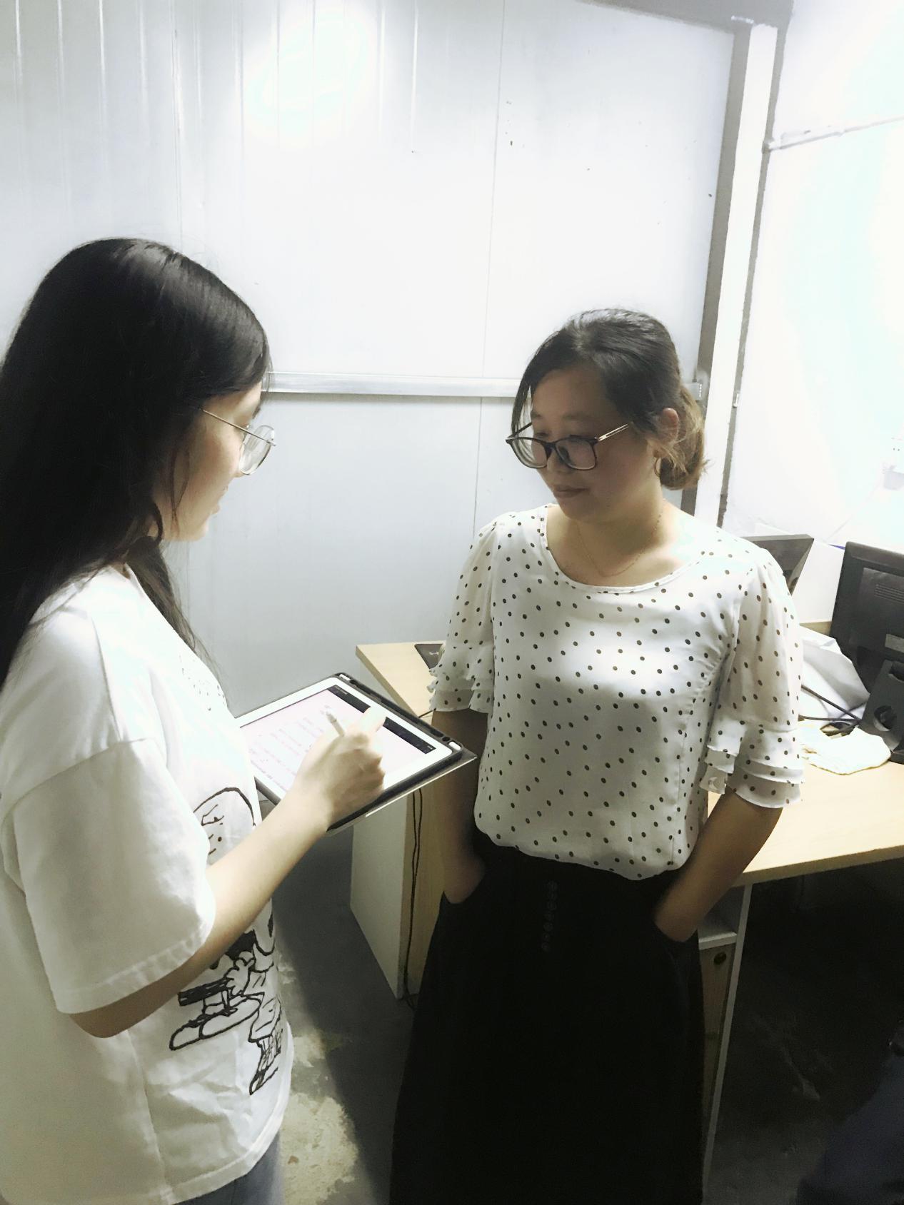 为了了解温州制鞋业经历疫情后的复工复产情况,实践队队员娄逸娴、李勉来到了温州市大都市女鞋园区的佧丹女孩生产车间进行实地调研。