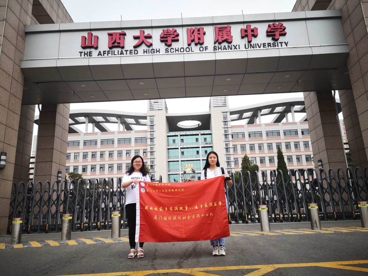 为进一步了解太原市各中学教育资源分布情况及对素质教育重视程度的差异,8月4日-5日,厦门大学经济学院厦门国际银行桑梓杏坛实践队太原小分队分别参访了当地的名校山西大学附属中学(下称“山大附中”)和教育资源相对薄弱的太原平民中学(下称“平中”),展开进一步的调研。