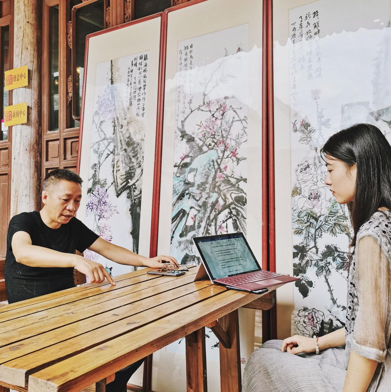 7月28日下午3点,别创一阁实践队队员按照约定时间来到砚房背后66号文化创意园,此次拜访的目的是深入了解文创园的实际经营,负责人刘晓武先生热情的接待了实践队员,已经是第三次来到文创园,实践队员与文创园显然不像之前那样陌生,而是熟络的交谈起来,在葫芦居开始了我们的采访。