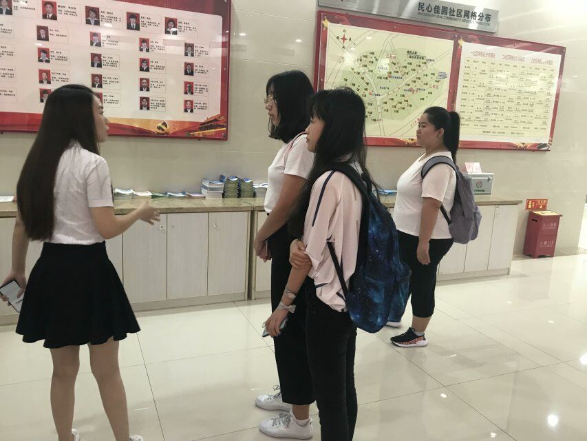 27日上午,实践队成员来到了民心佳园小区。作为全国首个摇号入住的公租房小区,它对于探究公租房社区公共服务均等化建设现状有着重大研究价值。首先,队员们在民心佳园居委会杨琴委员的带领下参观了民心佳园居委会、办事大厅、消防站和居民活动中心。她介绍到,民心佳园一共55幢楼,分为3个社区,27个网格,由社区工作人员担任网格长,招聘租户担任网格员,进行网格化管理。网格员们主要工作职责为收集租户信息和不定期开会反馈租户情况。随后,杨琴委员向队员们介绍了民心佳园丰富的社区活动。不仅包括传统节假日的相应活动,还有社区组织的邻里节、全民健身运动如篮球赛等等。同时,居委会内部还设有图书馆、书法区、绘画区、舞蹈排练厅等区域,充实租户的业余生活。此外,居委还会设立幼儿托管班、定期举行关爱空巢老人的“幸福来敲门”活动、英语补习班等,关心租户生活的方方面面。最后,杨琴委员耐心的解答了实践队员关于小区垃圾分类和清理、安全保卫、租户来源、配套幼儿园和小学的基本情况、住房质量和租金、违章搭建和未来规划等等各方面的问题。