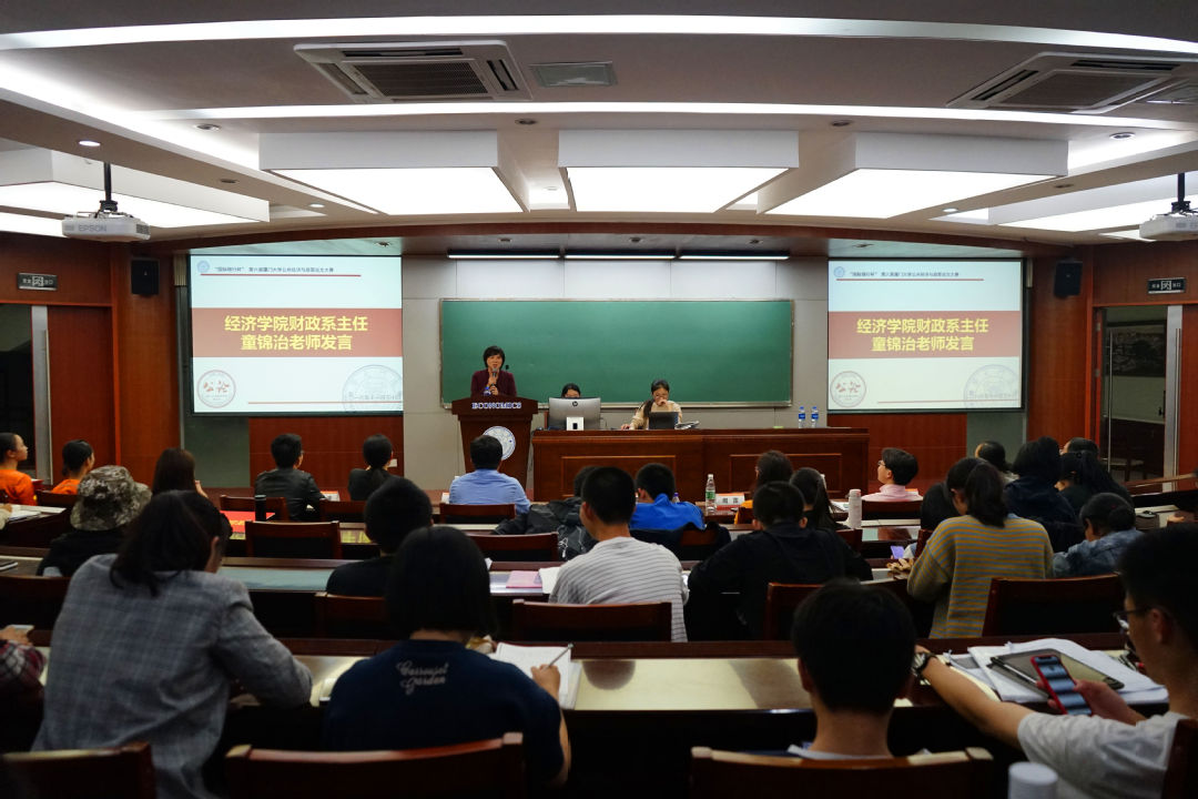 11月30日晚,“国际银行杯”厦门大学第六届公共经济与政策论文大赛在经济学院N302顺利举行。大赛有厦门大学教务处、共青团厦门大学委员会、厦门大学经济学院主办,经济学院财政系、经济学院学生科创中心承办,厦门国际银行赞助支持,经济学院党委副书记周蕾、财政系主任童锦治出席了决赛,大赛决赛由财政系童锦治教授、蔡伟贤副教授、李培副教授、鲍小佳助理教授、丁锦秀助理教授担任评委,经济学院辅导员徐惠聪、刘长青也参加决赛。