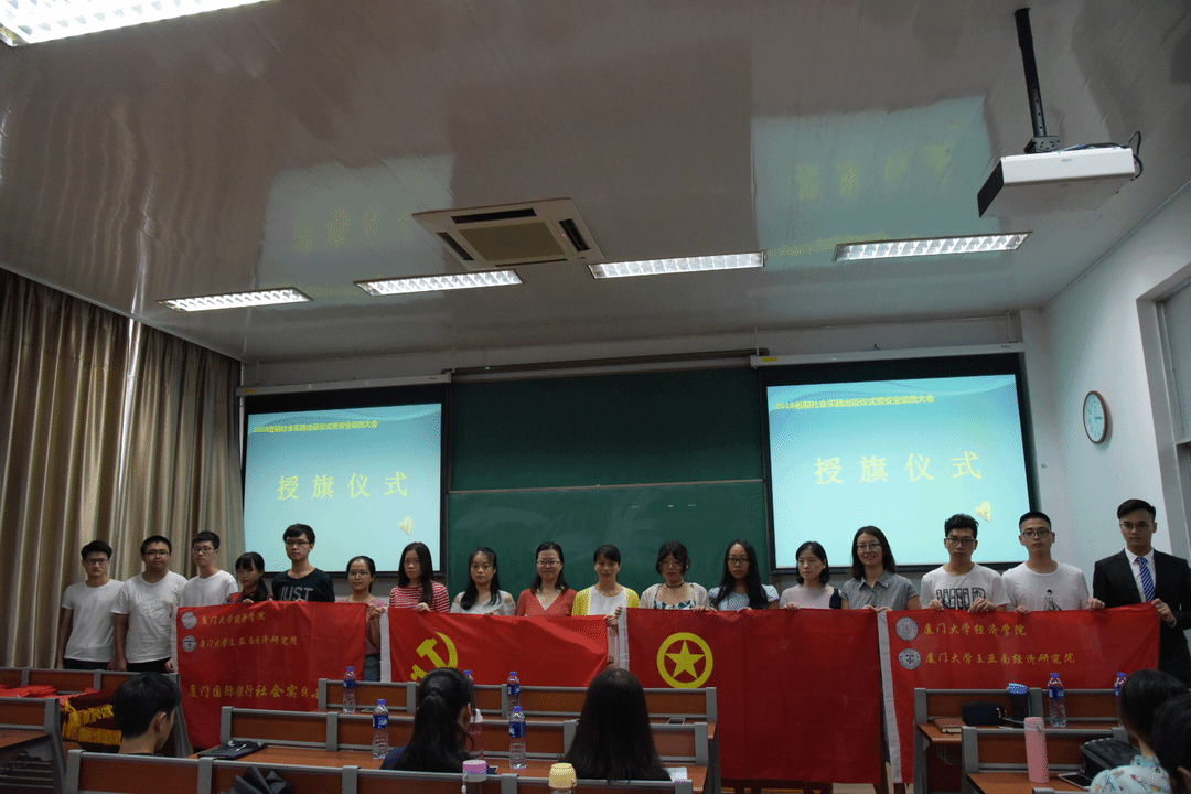 为学习贯彻习近平新时代中国特色社会主义思想和党的十九大精神,深入领会习近平总书记关于青年成长成才的重要论述,引导学生深入实践,了解国情,服务社会,增长才干,2018年‘厦门国际银行’厦门大学经济学院、王亚南经济研究院暑期社会实践出征仪式暨安全动员大会于7月16日下午在D236顺利举行。经济学院党委副书记周蕾、团委副书记郑淑真、辅导员赵小姝、刘慧、王华、徐惠聪、林轶凡、刘长青出席了本次活动。
