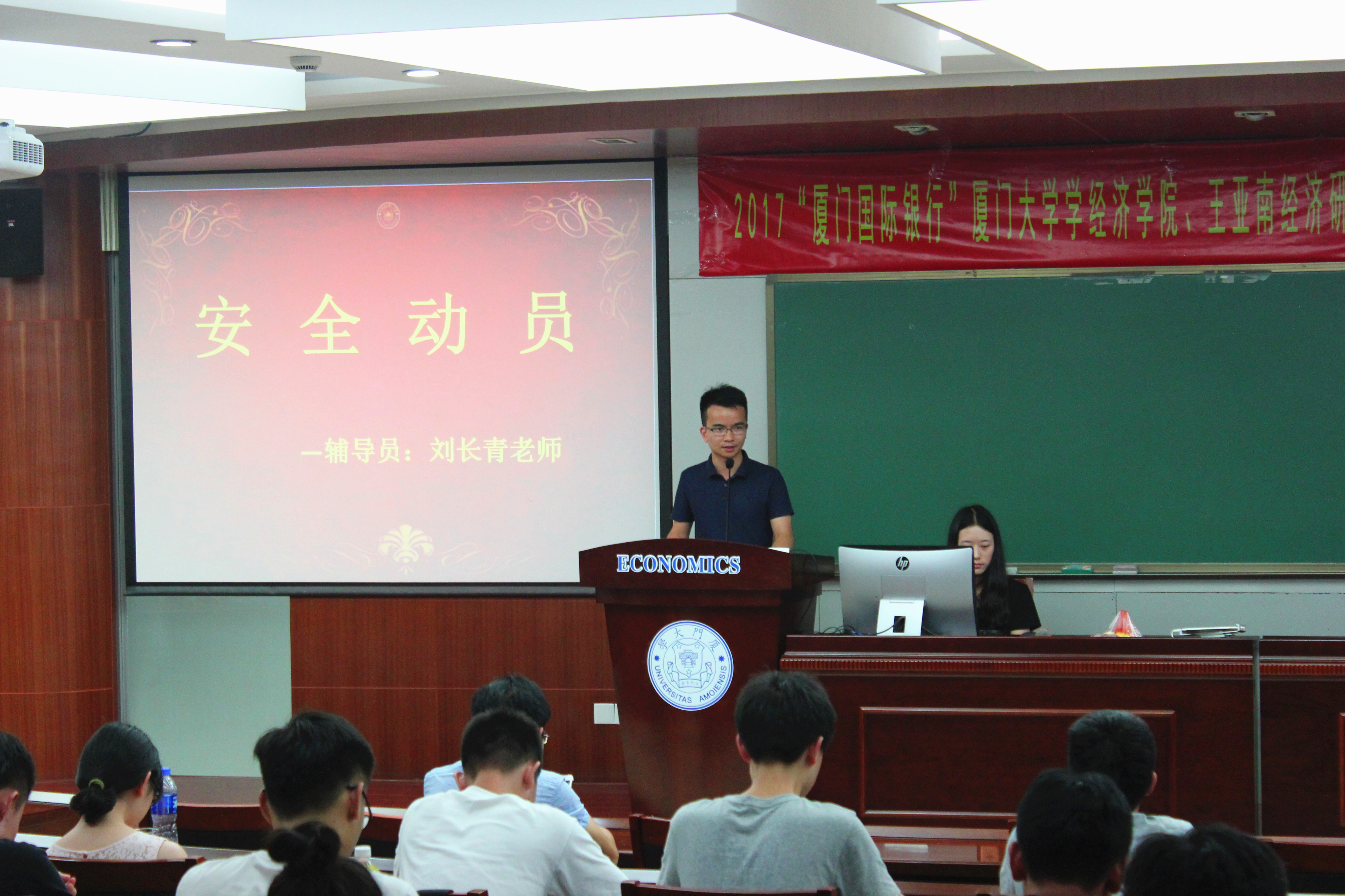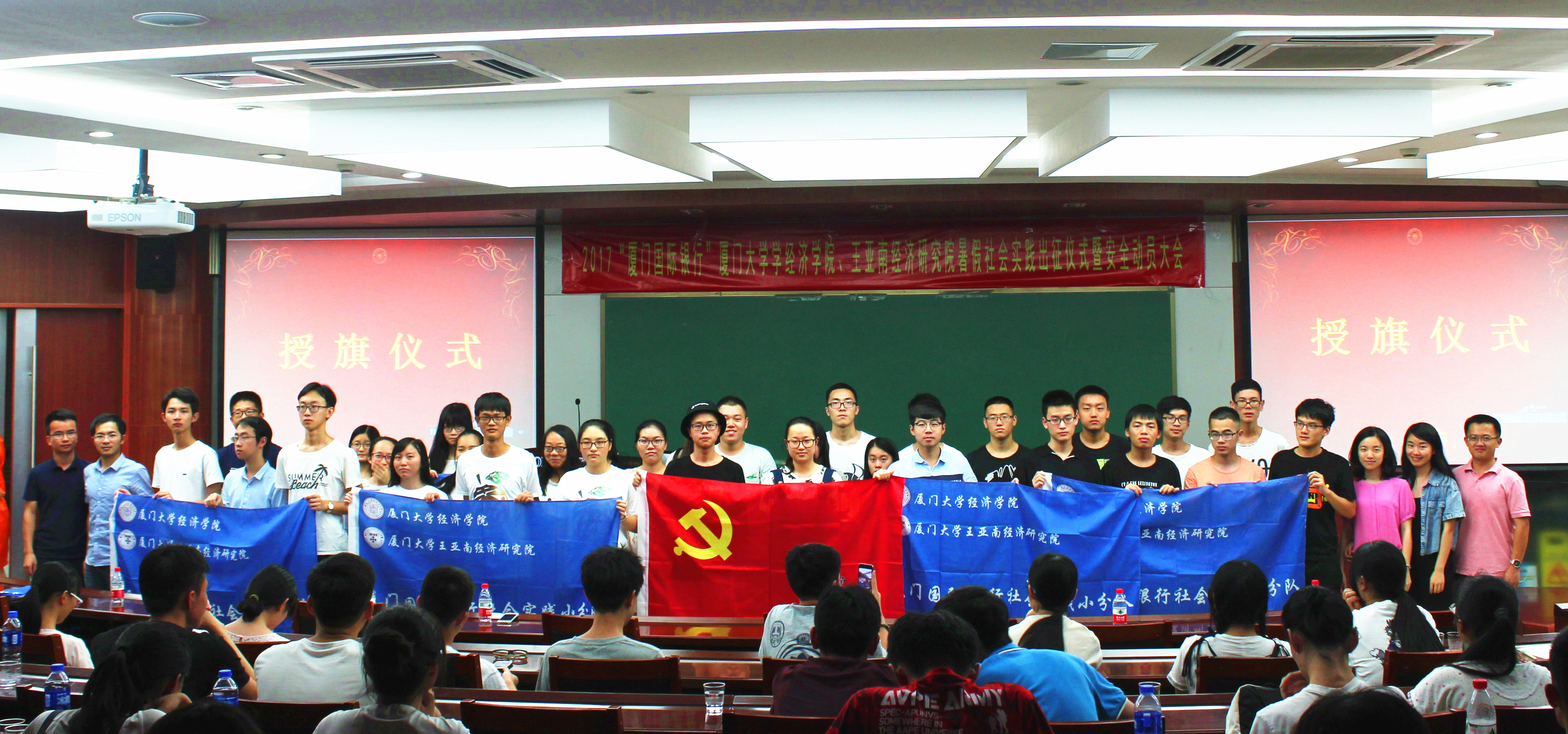 为引导大学生在社会实践中深化对“中国梦”的理解认识,充分调动学院和广大青少年参与社会实践的积极性,营造积极向上的氛围,“喜迎十九大,青春建新功”,“厦门国际银行”2017年厦门大学经济学院、王亚南经济研究院暑期社会实践出征仪式暨安全动员大会,于7月7日晚在经济楼N303圆满举行。辅导员徐惠聪、施晨、林轶凡、郑成竹、刘长青出席了本次活动。