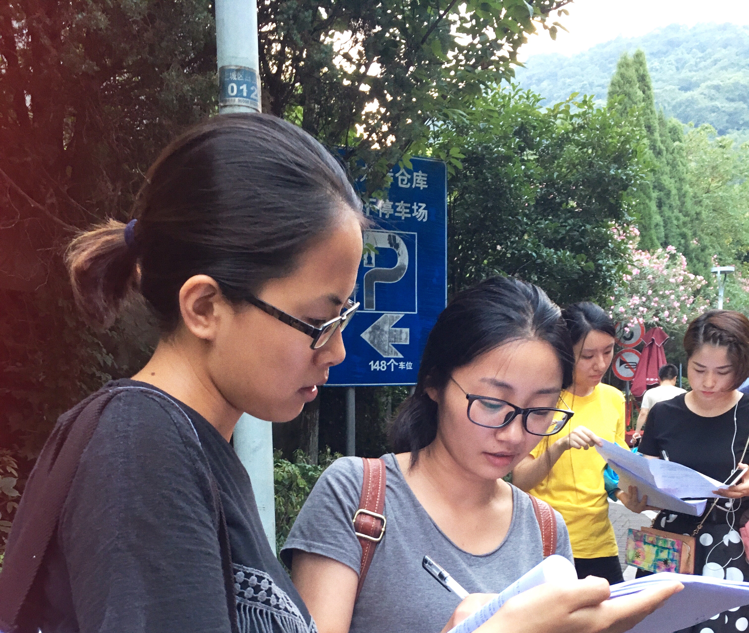 7月24日下午,迎着40摄氏度的高温,实践队员抵达杭州市。随后,队员们进入玉皇山南基金小镇一期园区内发放问卷,通过问卷调查园区内企业员工对小镇就业现状的看法。时值各公司企业下班时间,实践队员在小镇园区内的路上寻找员工,发放问卷,同时向员工询问一些关于基金小镇工作状况的基本情况,进行更为直接的了解。