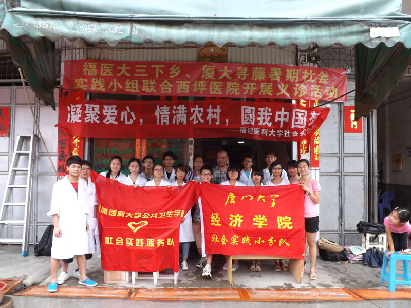 厦门大学“寻藤”暑期社会实践队伍将在安溪县展开关于藤铁工艺产业链发展道路的调查活动。为了扩大社会实践的社会影响力,体现大学生的志愿者精神,寻藤实践队刘梦影、石欣雨、黄振鹏、王玉玲四人来到安溪,与福医大联合开展了此次义诊活动。希望通过本次活动,深入到村委会、乡镇基层,向居民普及医学常识,提高居民的保健意识,满足居民卫生服务的需求,尽量减少乡村“看病难”的问题。实践队在活动中主要负责事前联络、宣传,制作并悬挂横幅,发放医学常识小册,维持场地秩序等工作。