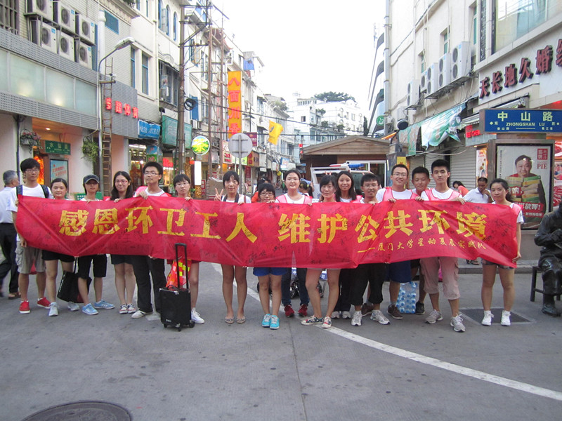 七月七日你在做什么?难道还是宅在寝室打dota或者看所谓的天梯七七大战?这样你就太OUT了!如果你走出校门,踏上热闹的中山路,你将会偶遇一场别开生面的表演——厦门大学“星动夏辰”实践队的“快闪”舞蹈公益宣传活动。这次活动的目的是为了引起游客和居民对环卫工人的重视,呼吁大家感恩环卫工人、爱护公共环境。
