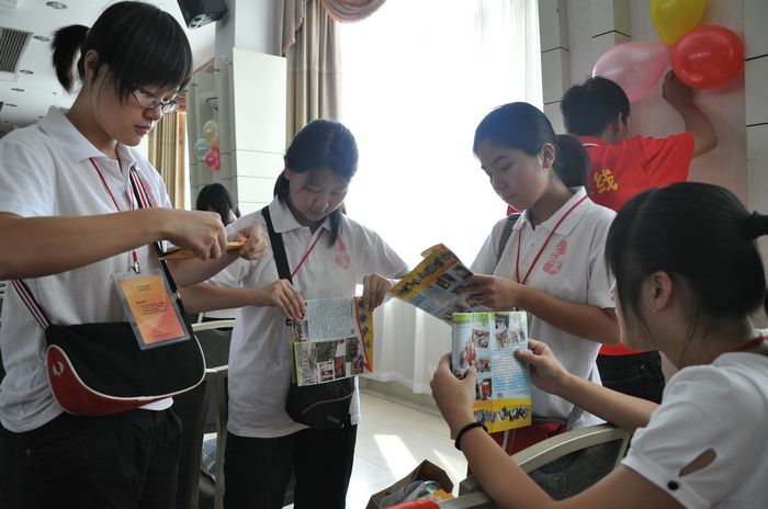 对于在学校里也多次参加过志愿者活动的实践队队员们来说,前期布置晚会会场的任务就轻松得多了,真情在线公益服务中心本身就有许多的志愿者参与,吹气球、摆桌椅、准备募捐箱、茶水、为演员化妆等等,都有条不紊地进行着,实践队的队员们则负责折好并按座位发放宣传单,虽然只是简单的工作,但队员们依旧兴致勃勃地融入其中。当然,队员们也在晚会中带来了精彩的表演,既有诗朗诵,又有二胡独奏,博得了在场观众们的阵阵掌声。