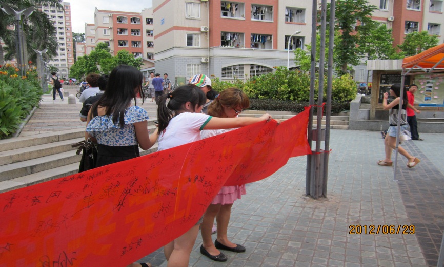 参与活动同学与实践队队员合影留念,并在宣传横幅上签字,留下美好回忆。