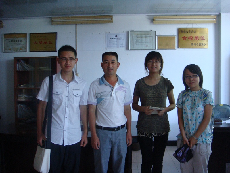 上午,实践队前往安溪县土产公司,与该公司负责人进行了亲切的交谈。队伍从农家店的申请流程、政府的补贴政策、配送方式、检查监督等方面对负责人进行了提问,负责人热情地给出了回答。在走访过程中,实践队了解到安溪土产公司管理层主动向省供销合作社上交承办农家店的申请书,在得到批准后,该公司将其旗下的门店按照标准进行改造。在这些农家店中,统一配送的货物份额较少,主要是由农家店自己决定货源及货物量。当然,政府相关部门会不定时到农家店进行监督检查,但次数较少;政府还一次性给予每个农家店2000元的补助,用于农家店的建立、装修和扩大。负责人最后提到,这些由土产公司进行改造过的农家店在经营状况及服务情况上都有明显的进步。