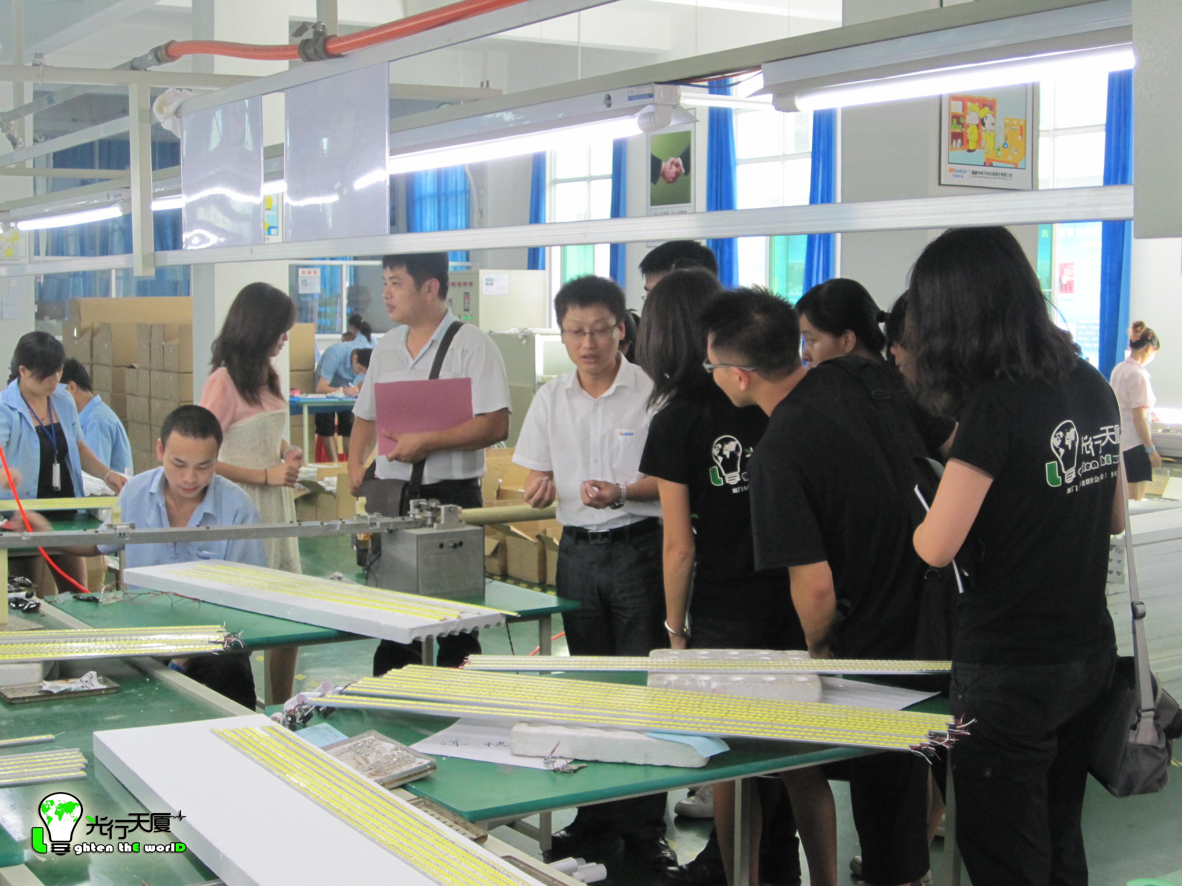 在告别了市政府部门后,下午3时,在市发改委副主任的带领下,实践队一行人来到了莆田LED的龙头企业----中科万邦集团。在公司大楼的会议厅里,中科万邦总经理助理招待了实践队一行。在看过实践队准备好的问卷后,该负责人详细地就几个大方面回答了实践队的疑问,并提出中科万邦的任务不仅仅是获取利润,更重要的是推动整个福建省LED产业的发展,成为行业标准的制定者。中科万邦宽阔的眼界和社会责任感另队员们十分感动。通过50分钟左右的座谈,光行天厦了解到了中科万邦的技术优势、同台湾企业的合作、政府如何扶持等有关情况,收获十分丰富。