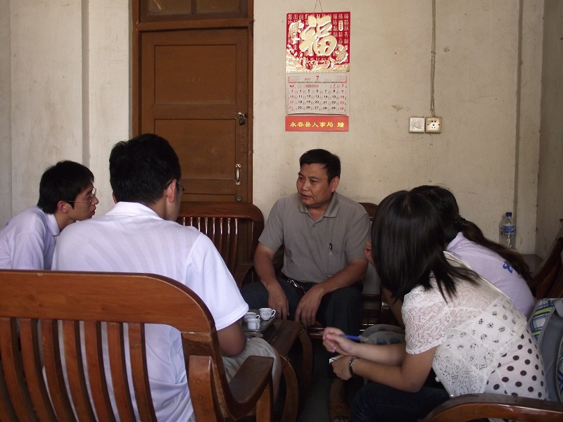 到达永春之后,部分队员迅速放下行李,马上前往之前联系好的经济贸易局财贸股,对该局此工程的相关人员进行访谈。经贸局财贸股吴股长热情地接待了队员们。访谈一开始,吴股长大致介绍了这五年来“万村千乡市场工程”在永春县的总体发展情况以及农家店在永春县的数量和覆盖范围等基本信息,接着为实践队详细介绍了两家与政府合作承办农家店的龙头企业。吴股长通过系列事例说明政府如何通过补助、培训专业人员、统一招牌、规范管理监督等系列方式与农家店的保持关系。最后吴股长还表示,政府将继续努力提高企业对农家店的货物配送率及对商品质量的监督,使农家店能达到真正服务农民,提高农民消费质量的目的。