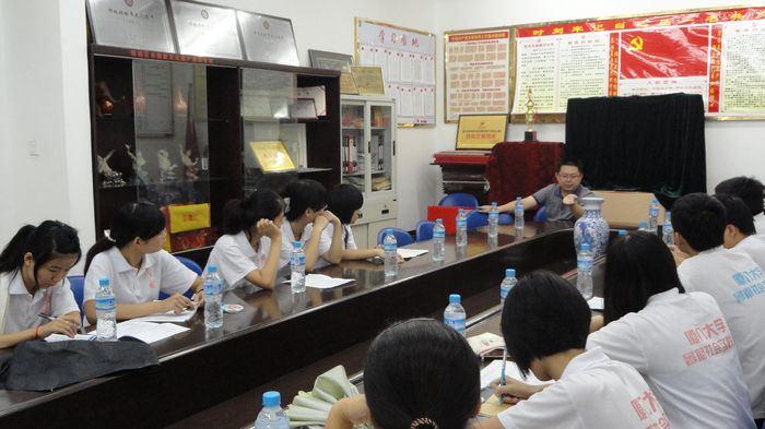 温陵南艺坊艺术传播中心的负责人黄志军先生接待了实践队一行人,他首先向队员们简要介绍了温陵南艺坊,随后便带着队员们四处参观并为队员们做详细的讲解。参观过后,黄志军先生领着队员们前往会议室进行座谈,就队员们提出的问题一一做了解答,“他很幽默也很时尚,告诉我们的信息都很现实很有用,”队员魏舒凡说。