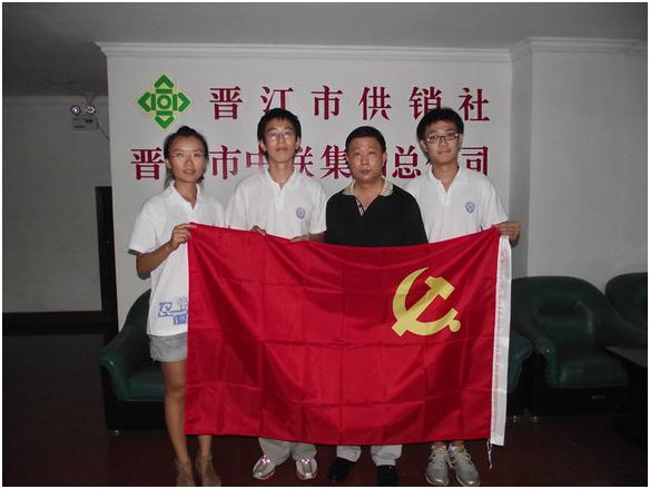 该小分队通过对晋江市的财政局、商务局、供销社的电话采访,分别了解到了这三个访问对象在农家店建设工程中的重要作用。于是,小分队决定先从供销社入手考察其的基础性作用。队员们在晋江市供销社得到了业务科科长王明塔的热情招待。通过与王科长的对话,队员们了解到了供销社为何建设农家店、如何建设农家店以及农家店的现存状况及独特优势。最后,王科长与队员合影并为队员们送上了亲切的祝福语。
