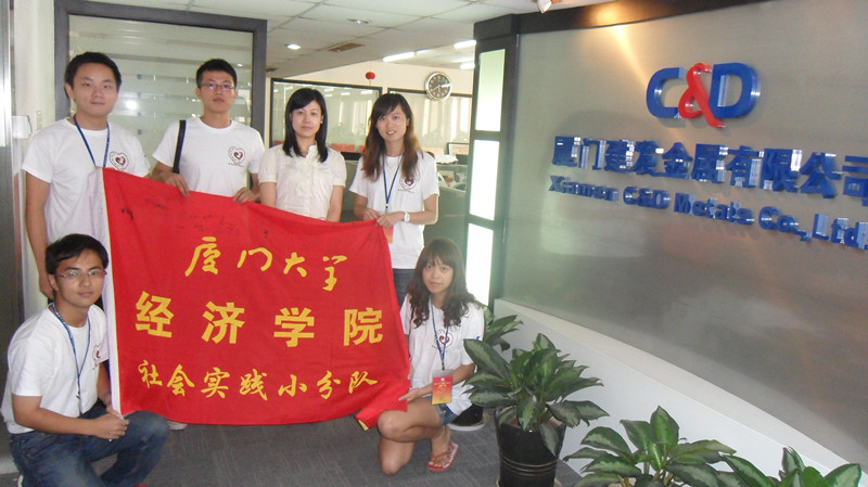 2011年7月22日,厦门大学经济学院“校友情、鹭江行”暑期社会实践队一行走访了厦门建发金属有限公司,并与厦大校友郑芸学姐进行了面对面的沟通和交流。