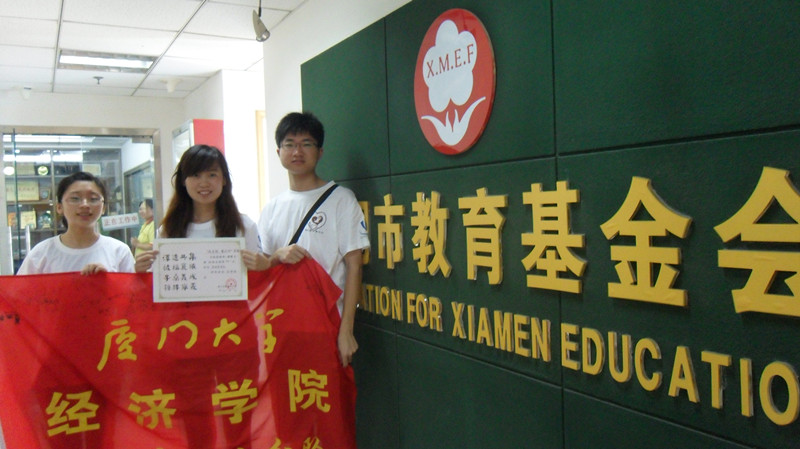 7月25日,厦门大学“校友情,鹭江行”暑期社会实践队小分队在队长王菁同学的带领下,前往厦门市教育基金会捐献实践队“美丽视界,用心呵护”爱眼护眼公益活动义卖所得金额300元,用于帮助贫困大学生。小分队受到了教育基金会吴老师的亲切接待。