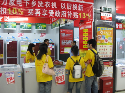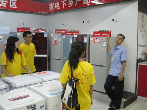 今天,实践队继续走访了龙岩市新罗区的家电下乡的大型销售网点之一的春风电器城。实践队围绕家电下乡产品的质量问题、服务问题以及工作程序问题等展开实地的访谈。春风电器城设置了家电下乡产品的专柜,在政策宣传、产品服务方便也做了相应的支持,但是还是存在程序繁琐等问题。