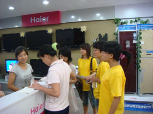下午3点,经过简单的调整,实践队来到了沙县步行街的大型销售网点,与商家进行简单的访问调查。通过与海尔专卖店、长虹、格力等经销商的座谈,实践队了解到家电下乡政策实施以来,对于经销商而言销售量得到了不同幅度的提高。某些品牌如海尔冰箱,由于宣传到位、质量品牌信誉度较高等得到了农户的广泛接受,出现了供不应求的现象。家电下乡产品由于实行全国统一招标定价,所以商家的利润空间相对较少,同时对于同等价位的其他相对不知名品牌造成了一定的影响。整体而言,大部分商家的利润与去年同期水平相比呈持平状态。对于福建省近期新出台的经销商代垫政策,大多数经销商表示是一项实在的惠民政策,对于消费者而言更是方便,商家也愿意配合政府共同实施此项政策。