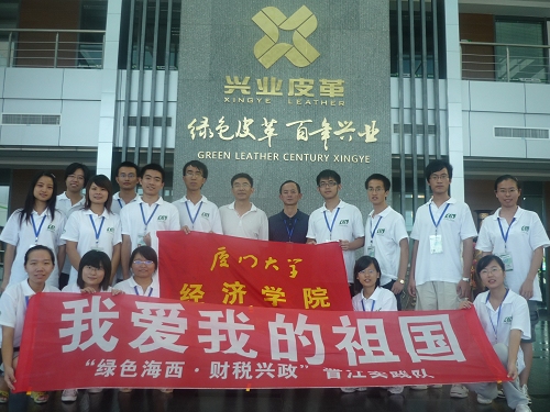 7月29日,厦门大学经济学院“绿色海西·财税兴政”晋江实践队继续走进基层,奔赴晋江市安海镇可慕皮革集控区和晋江市绿色皮革示范企业,对皮革行业的节能减排进行了深入的了解。