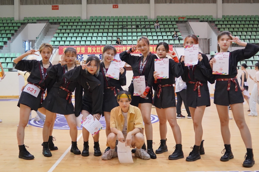 艾欣妍、陈思睿、黄莺、李诗婕、李子晴、刘烨、詹嘉妮、庄婧玙八位同学斩获街舞(团体舞)第二名