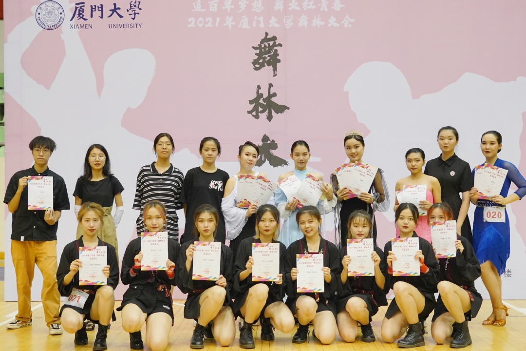 7月3日下午,2021年厦门大学“舞林大会”体育舞蹈大赛在明培体育馆举行。经济学院代表队以总分110.00的傲人成绩,位居大赛团体总分第一名。其中,关茹菲同学荣获女子单人单项标准舞(W)第一名、女子单人C组标准舞第一名以及女子单人A组标准舞第一名;李润龙同学荣获街舞(单人组 popping)第一名;黄嘉琦同学荣获女子单人单项标准舞(Q)第一名。经济学院团委副书记王华老师前往现场观看比赛,为舞蹈队员们加油鼓劲。