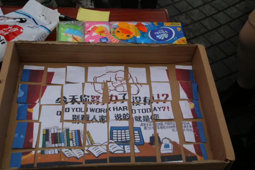 “不负韶画”队员为同学们准备了拼图小游戏,其游戏的意义在于告诉更多的人保护芙蓉隧道志愿工作的重要性,芙蓉隧道的壁画就像是一张美丽完整的拼图,可是由于游客们的乱涂乱画,这些原本美丽无比的壁画开始变得零零落落。完成一幅拼图都并不是一件容易的事,更何况修复一幅壁画呢?所以隧道的壁画保护工作就十分具有价值,他们一遍遍呼吁,希望更多的人加入他们,守候厦园最美的风景。