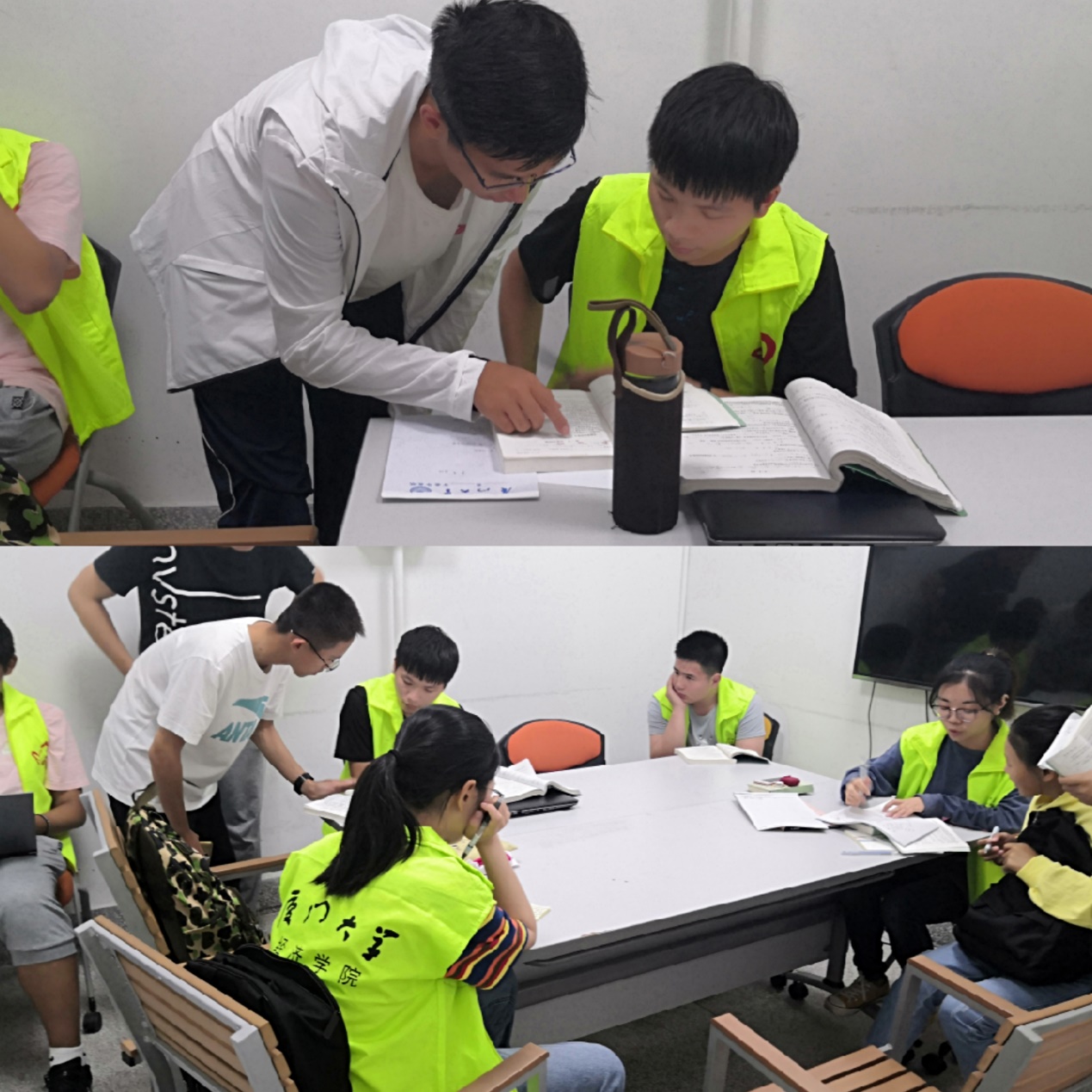 到了晚上七点,需要解决自己在学习过程中遇到的疑惑的同学相继赶来,在带班志愿者的引导下到相应的答疑志愿者身边咨询具体题目或疑问,答疑志愿者在仔细思考后会将详细解答过程写在草稿纸上并耐心的向同学进行讲解,直到将同学们的疑惑彻底解决。