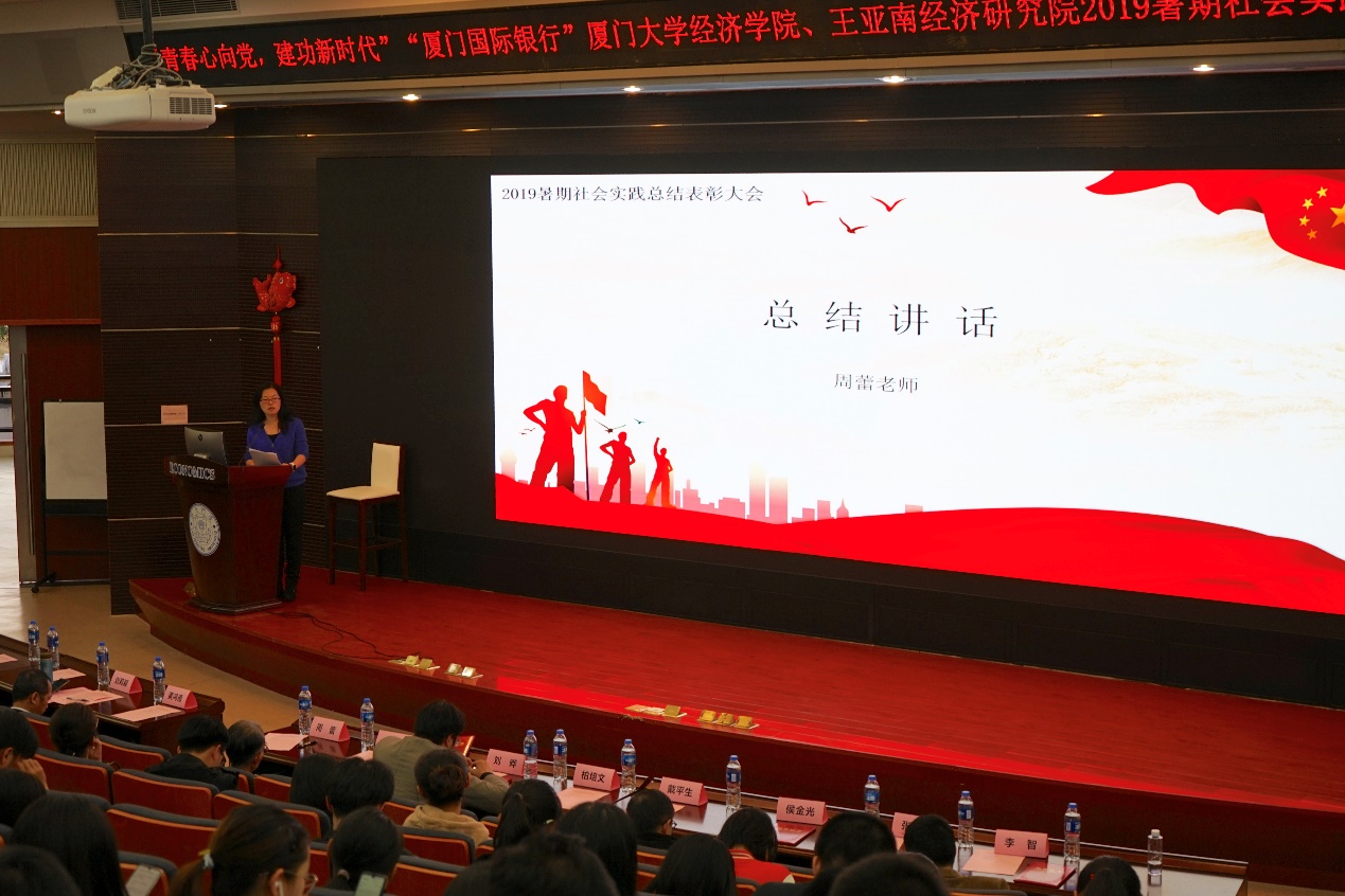 12月16日下午,厦门大学经济学院、王亚南经济研究院2019年“青春心向党,建功新时代”暑期社会实践活动总结表彰大会在经济学院N402顺利召开。经济学院党委书记黄鸿德,闽都中小银行教育发展基金会副秘书长张莹,院党委副书记周蕾,院团委书记刘莉颖,本次暑期实践优秀带队老师,辅导员和优秀实践团队代表等出席本次大会。