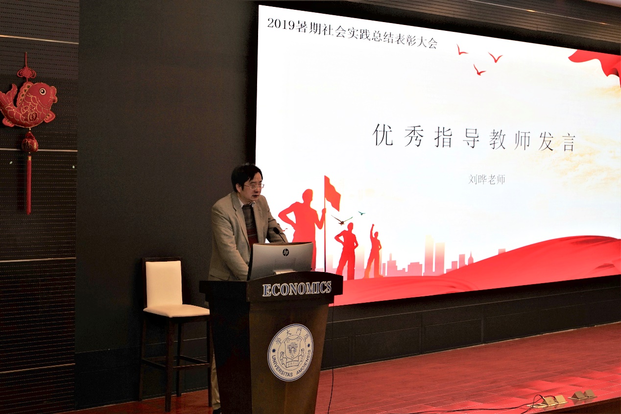 刘晔教授作为优秀带队教师代表发言。他指出了社会实践对专业学科的重要意义,并分享了指导过程中的三点体会。首先,在确定选题时,指导老师需要引导学生关注当前经济社会的重点和热点问题,贴近实际,反复论证;其次,专业教师要发挥学科优势,引导学生兴趣,促进学科与实践相结合;此外,实践应积极参与,从一而终。