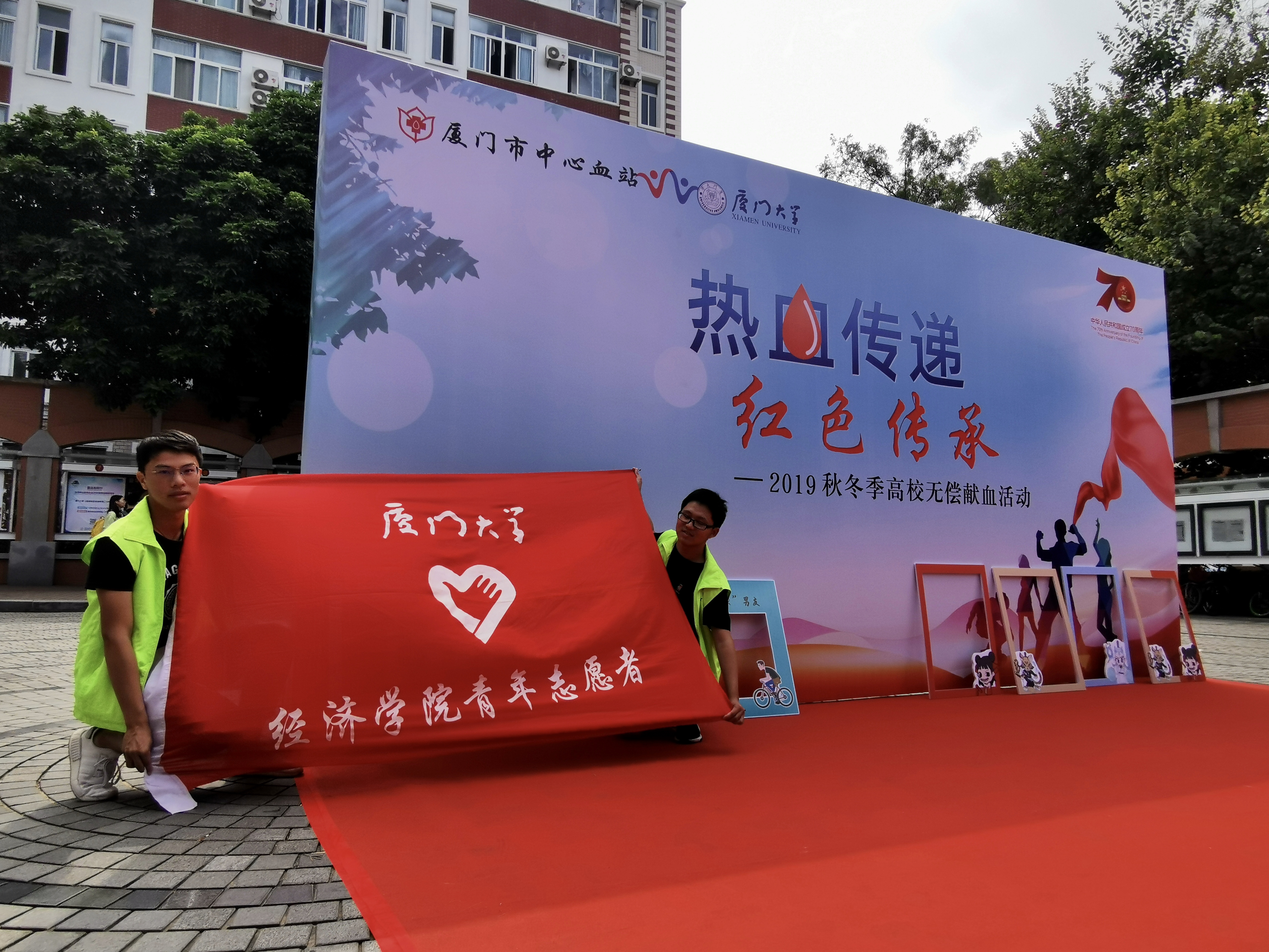 2019年10月22、23日两天,厦门大学血协联合血站,在三家村广场开展了无偿献血活动。其中,厦门大学经济学院青年志愿者协会“诠释爱”医疗志愿服务队负责22日中午的现场