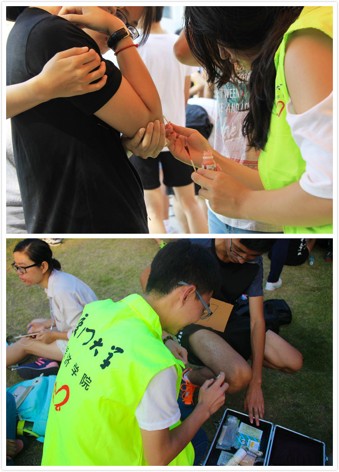 他们尽职尽责,充满热情,耐心守候在赛场旁,时刻关注是否有人受伤;他们甘于奉献,乐于助人,用自己的闲暇时间,来保障赛场健儿的安全;他们专业过硬,准备充分,提前学习急救知识,为伤员们细心处理伤口。