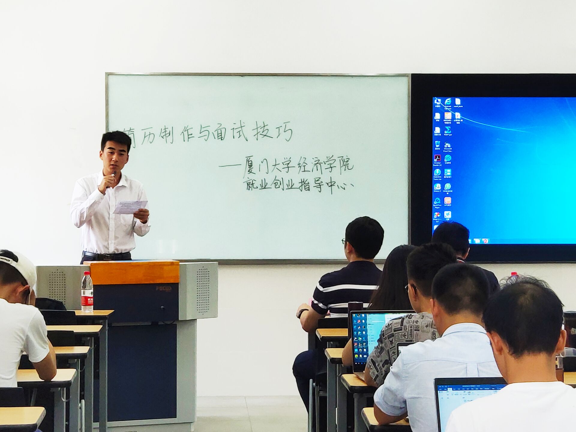 为了向同学们提供宝贵的学习机会与求职经验,经济学院就业创业指导中心于2019年5月12日下午两点在南强二201教室举办“简历制作与面试技巧”活动。本次活动邀请到厦门建发股份有限公司的陈庆辉先生与厦门象屿集团的龚佳猛先生两位资深HR为参与者进行全方面的指导和帮助。
