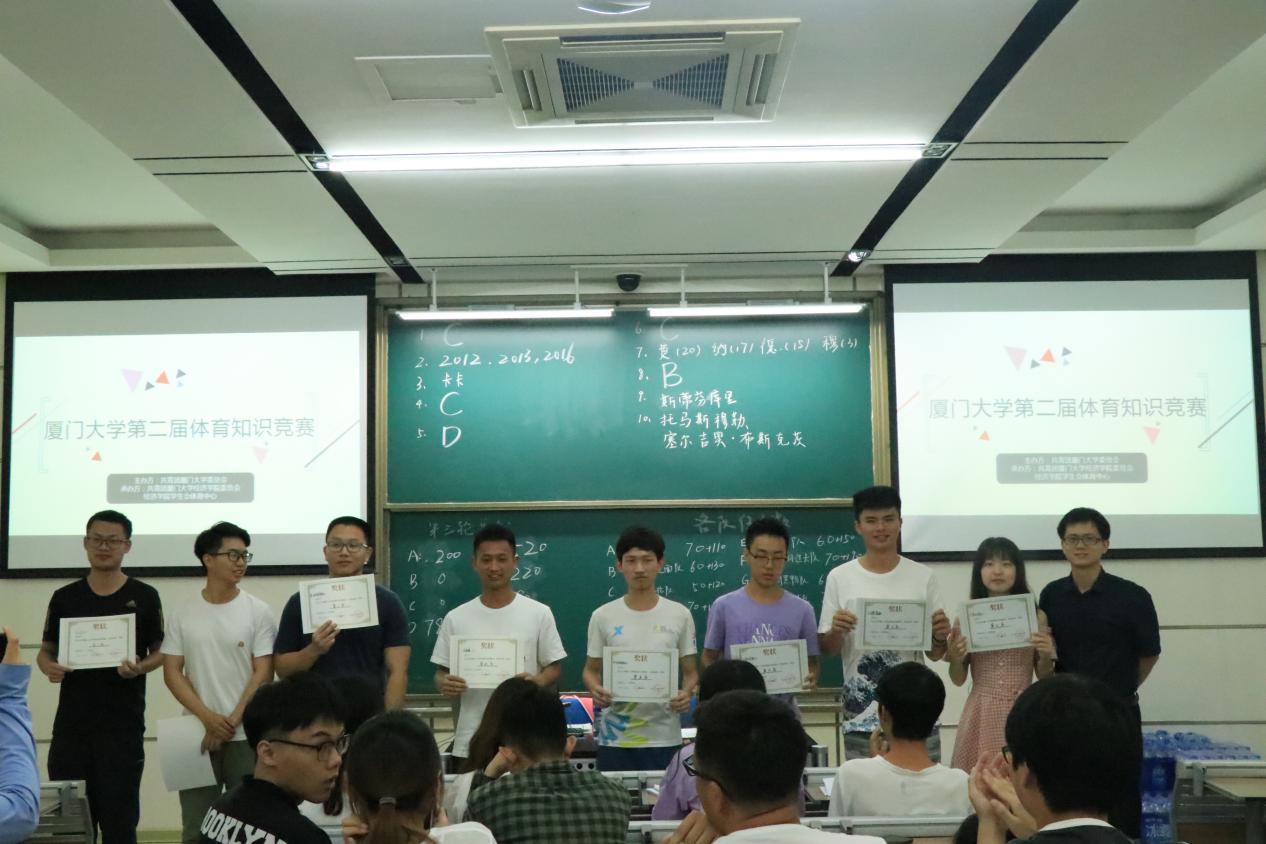 5月12日上午,由厦门大学体育教学部、厦门大学团委、厦门大学经济学院主办的第二届体育知识竞赛圆满结束。本次比赛分为初赛,复赛,决赛三轮,共76名选手参加初赛,经历一番较量之后最终有8支队伍成功进入决赛。