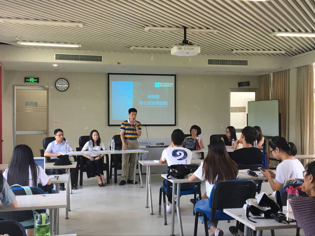 2018年7月21日下午,由经济学院就业创业指导中心举办的第十期“南强之约”活动在经院N301如期举行。此次邀请到安心互联网保险公司总精算师林锦添先生、富邦财险公司精算部副经理苏兴泉先生、太平洋财产保险公司准备金高级精算师杨晓漪女士、阳光财险公司准备金管理处处长杨慧伟女士、太平人寿保险公司资深产品研发员卜宇波女士、厦门大学统计系张志强教授来为厦门大学的同学介绍保险精算行业,讲解精算行业的发展现状与未来前景,对合格的精算师的要求等。本次活动旨在增进厦大学子对精算行业的了解,以更好的明确精算现状,明确自己未来发展方向。