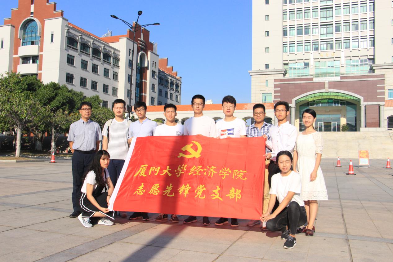2018年10月1日上午,正值祖国母亲69岁生日之际,厦门大学在嘉庚广场组织了观看升旗仪式的爱国主义教育活动。厦门大学党委副书记林东伟、学生工作处处长夏侯建兵、经济学院党委副书记邱旺土及各学院师生代表共300余人参加了此次升旗仪式。经济学院、王亚南经济研究院2017级研究生全体党员参加了此次仪式,并重温了入党誓词。