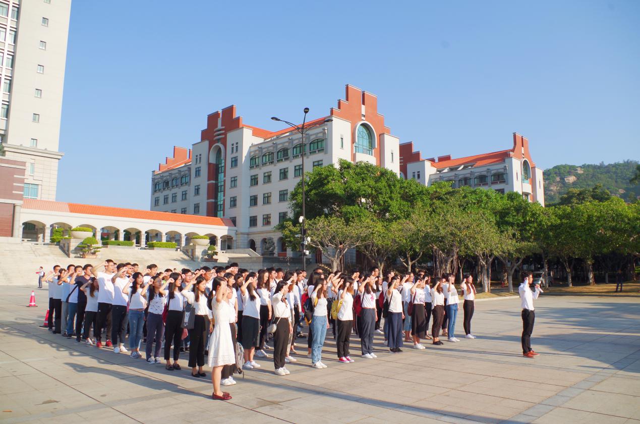 7点20分,在厦门大学学生工作处处长夏侯建兵的主持下,厦门大学国旗护卫队以整齐有力的步伐护送国旗入场。随后是庄严的升旗仪式与奏唱国歌环节,在场人员全体肃立,注目国旗,向伟大祖国致以崇高敬意和美好祝福。在雄壮的国歌声中,鲜艳的五星红旗冉冉升起,迎风飘扬。