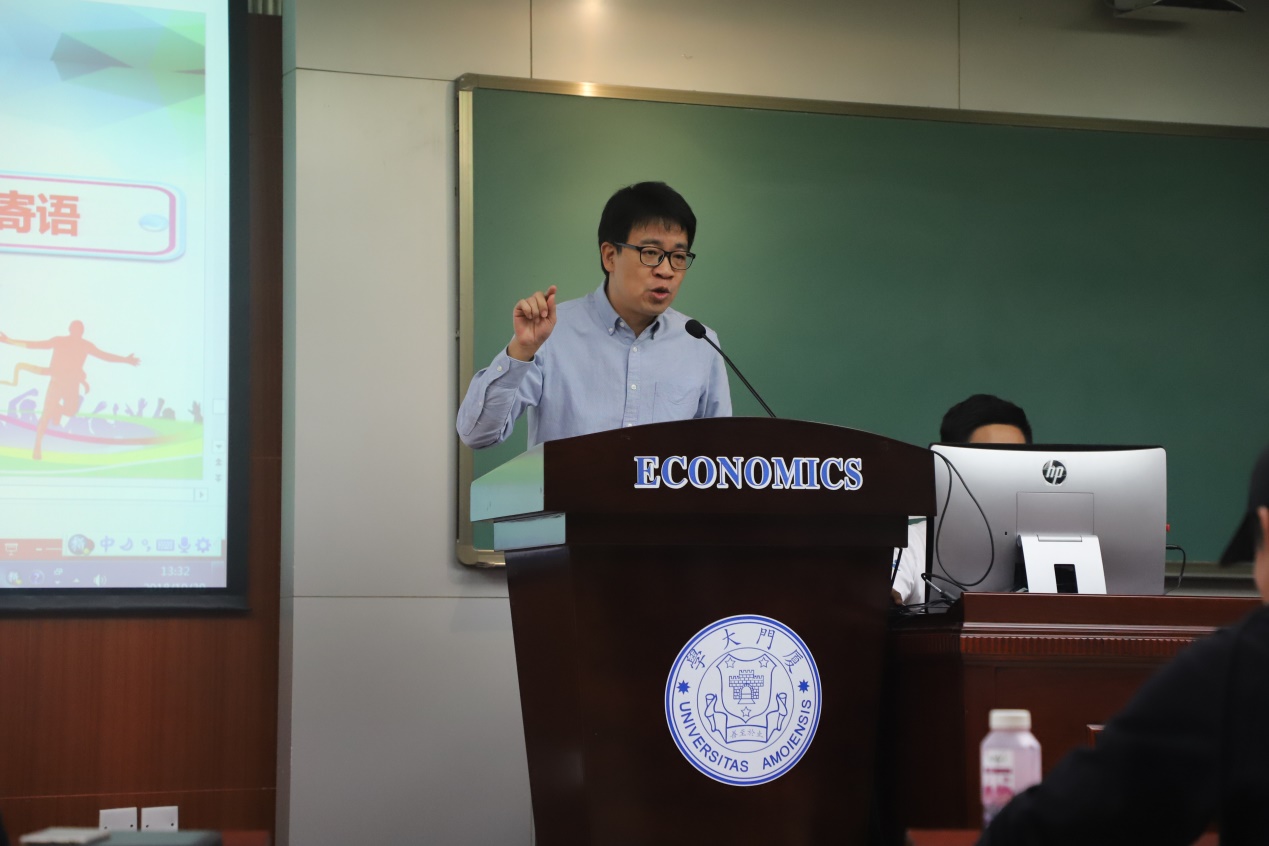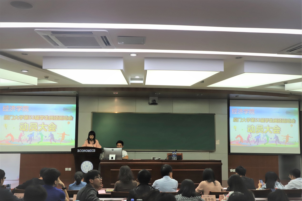 金秋十月,秋风虽凉却难掩空气中的热情,厦门大学第53届学生田径运动会即将拉开大幕。为鼓舞士气、凝聚力量,10月30日中午12时45分,经济学院于经济楼N203准时召开校运会动员大会。出席动员大会的领导老师有:经济学院党委副书记邱旺土、周蕾,经济学院团委书记何丽苹,经济学院团委副书记郑淑真、陈启妍以及全体辅导员。参加大会的还有本硕逾五十名经济学院备战校运会的体育健儿们,以及近百名来自学生会、研究生会各部门的后勤保障人员。大会由本科生学生会体育中心的陆雯靖同学主持。