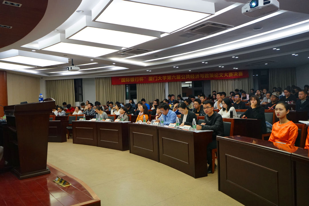 “国际银行杯”六届厦门大学公共经济与政策论文大赛自今年3月份启动以来,吸引了来自经济学院、王亚南经济研究院、管理学院、公共事务学院、人文学院等十余个学院的120多支队伍参赛队伍,参赛团队较去年增加30多支队伍。从大赛沙龙活动到初赛,再到最终的决赛,每支参赛队伍都在不断磨合,不断提升。闯入决赛的12支队伍,在赛场上展现他们的对公共经济与政策最独到的见解。大赛让参赛团队能够运用交叉学科视角,分析“新常态”下的公共经济问题,促进了不同学院、不同专业本科生间的交流,培养与提升了本科生的问题挖掘能力和学术研究能力。