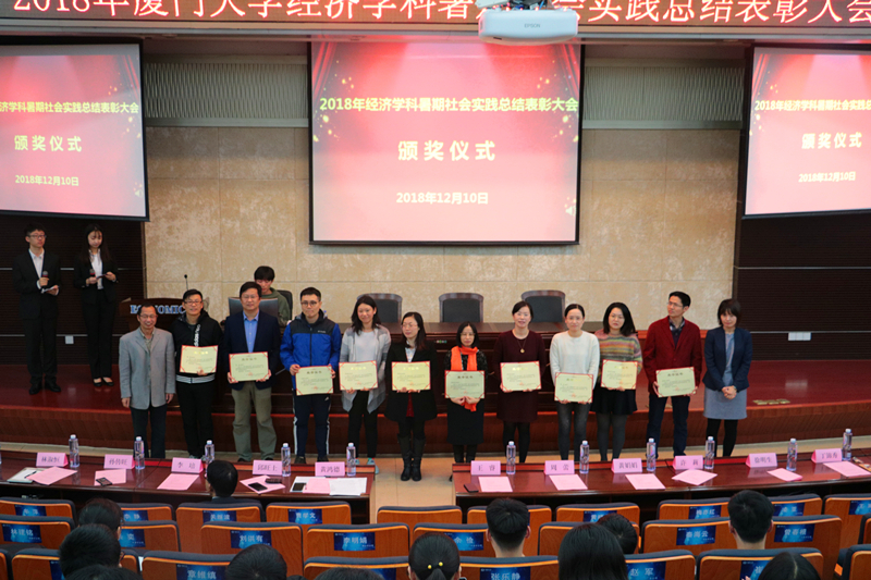 2018年暑期社会实践,厦大经济学科共组织92支实践队、近一千名同学、72位指导老师参与暑期实践工作,涌现出理论社团实践队、博士团、支教队、台港澳学生实践队、金融学国际化试点班体验式教学等各具特色的项目。经济学院获评厦门大学2018年暑期社会实践优秀组织奖,18支团队入选校级重点团队,“竹蜻蜓”支教队和“甘肃百合”支教队获评福建省“三下乡”暑期实践优秀团队,“绿政先锋”实践队获得第四届全国大学生能源经济学术创意大赛一等奖,“无人问经”实践队获评调研中国全国30强和“青年中国行”全国百强团队,“竹杖盲携” 实践队获评青年中国行全国30强团队;“瓶新而论”实践队、“饮水思源”实践队获评青年中国行全国百强团队 ,“政是有你,老有所e” 实践队获得2018全国高校大数据应用创新大赛二等奖。